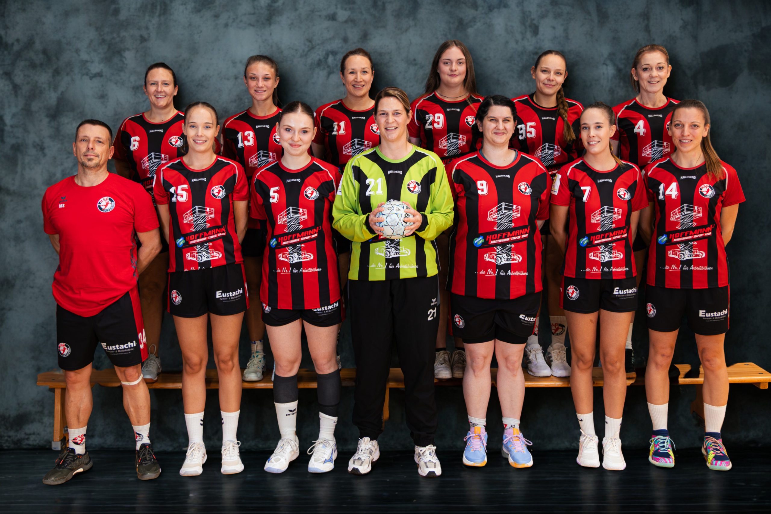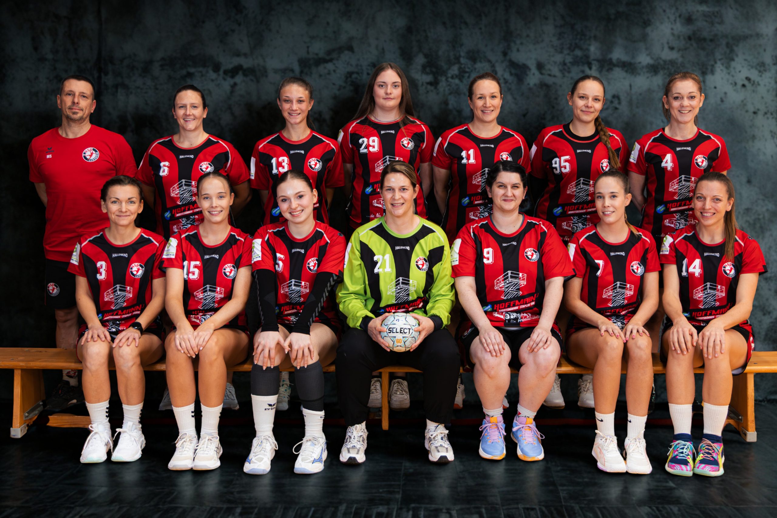 sitzend: Sarah Angstmann, Nadine Banditt, Elisa Schuster, Eva-Maria Geuder, Lea Kalt, Vanessa Banditt, Melanie Kohlmann